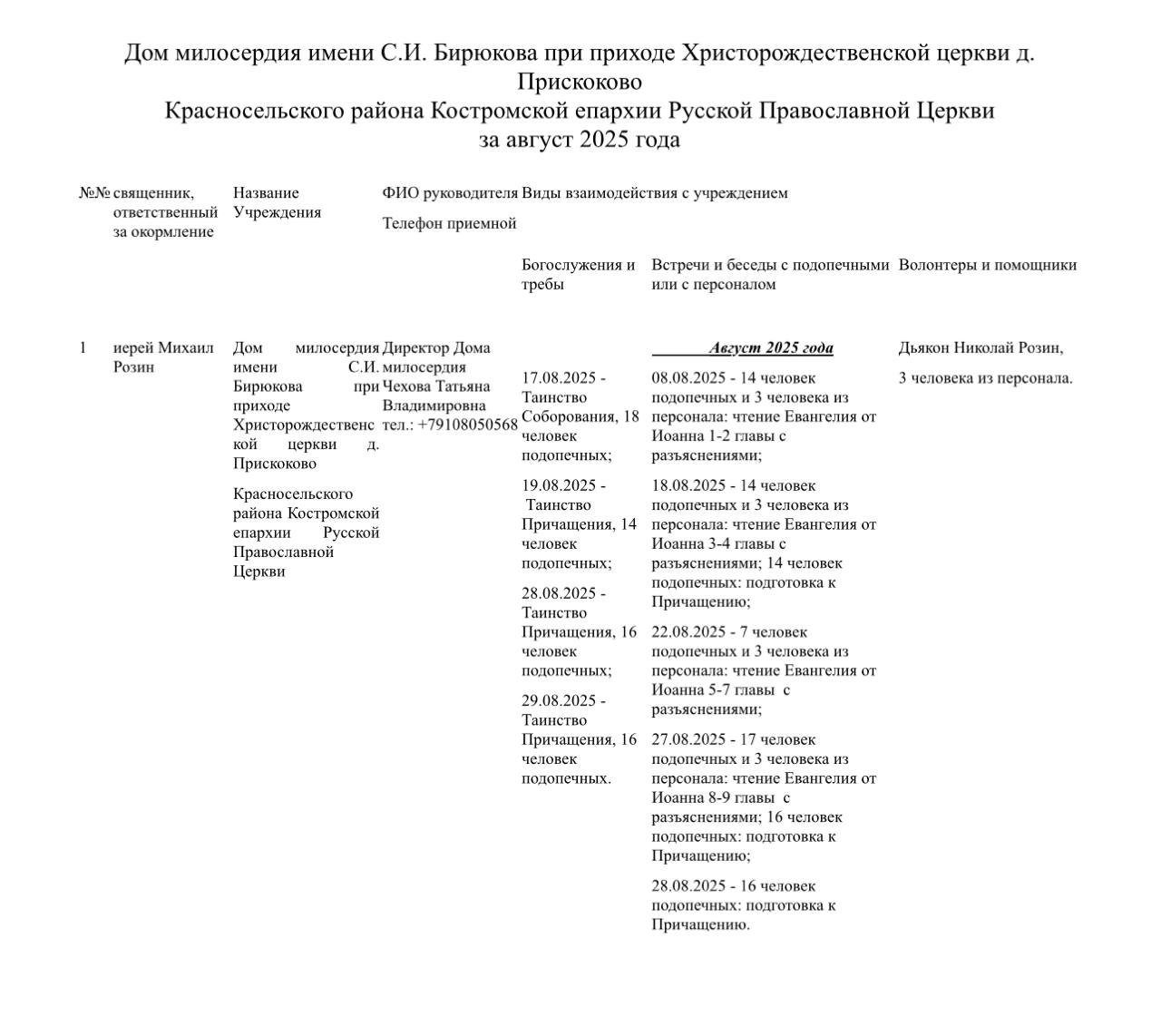 В Доме Милосердия имени С. И. Бирюкова август стал месяцем духовного укрепления
