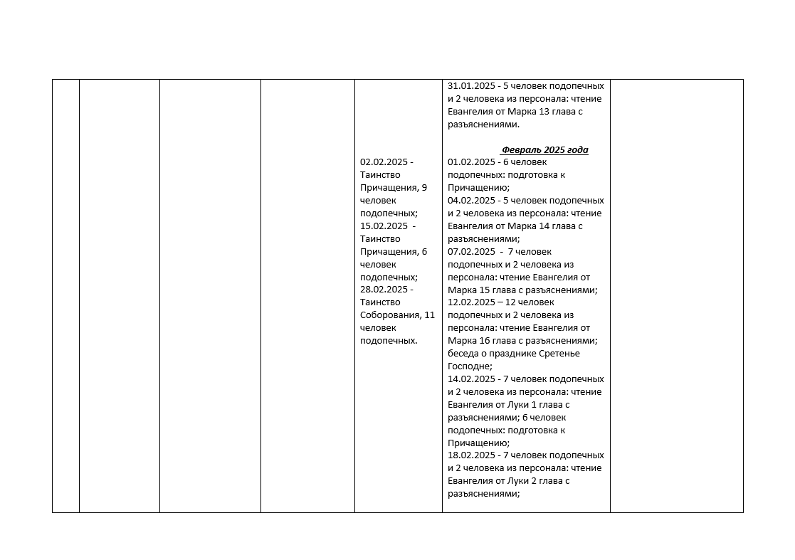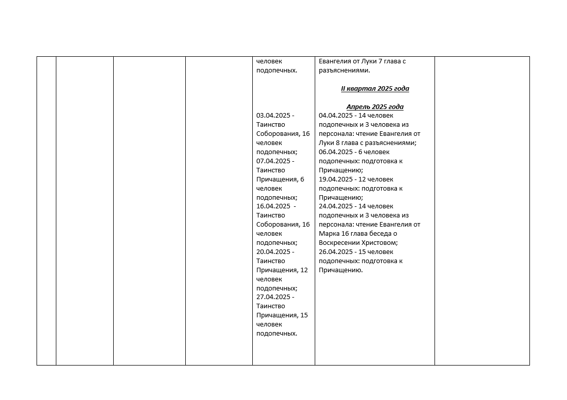 У нас прошли десятки бесед, сотни страниц Священного Писания, прочитанных и обсуждённых в кругу подопечных и персонала. От Евангелия от Марка — к Луке, от Иоанна — к Матфею, от Деяний Апостолов — к размышлениям о праздниках и подвигах святых.
